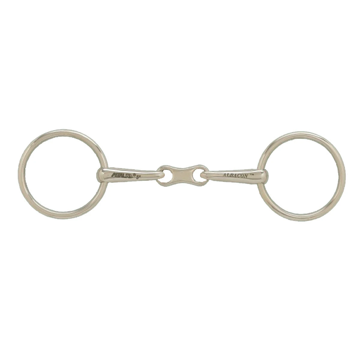 We love the AlBaCon German Silver 13 MM French Mouth with 65 MM Loose Ring Bit because the high copper form of German Silver stimulates salivation and helps prevent dry mouth, yet it has the same appearance. Excellent bit for a horse beginning training or a school horse with beginner’s hands.