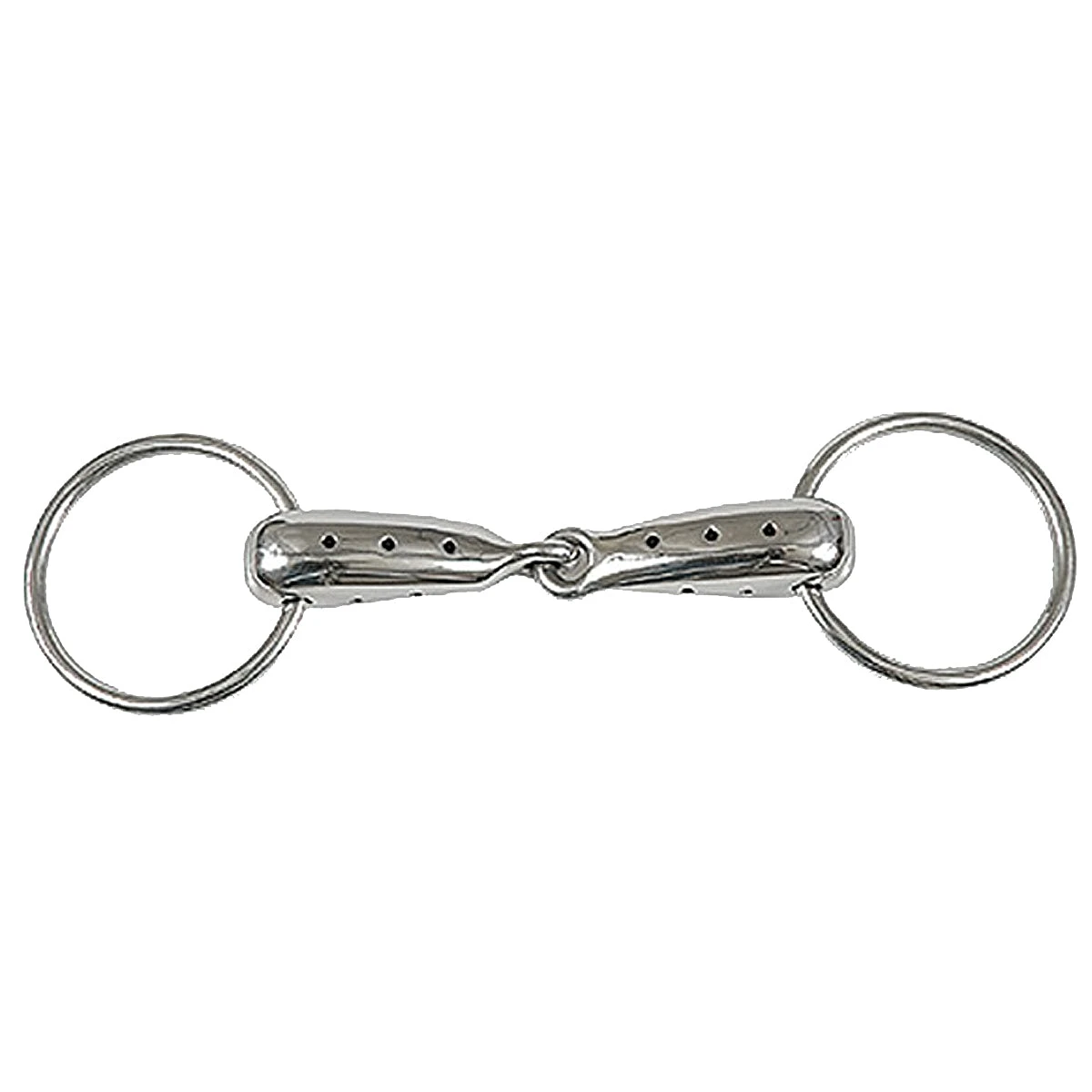 Stainless Steel Hollow Mouth Loose Ring Snaffle Bit with a ring size of 65mm and a jointed mouth with comfort holes and mouth thickness of 23mm.