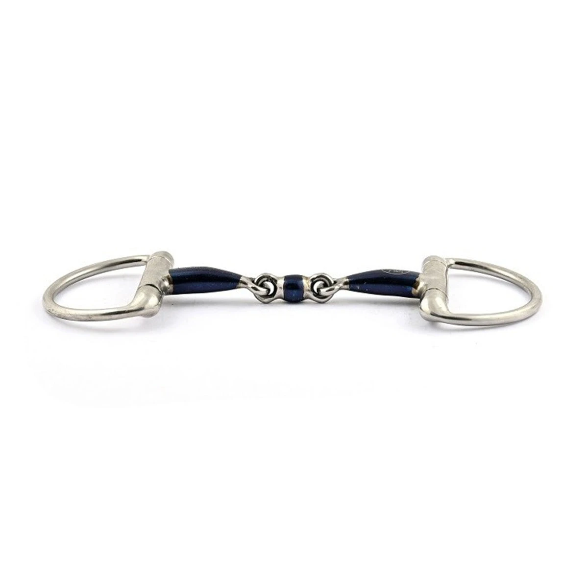 An eggbutt bit with 70 mm rings and 14 mm thick cannons made of Blue Steel, a very relaxing alloy that will oxidize with time. The oxidation helps encourage salivating and in turn relaxes the horse. A very classic bit with rings that don’t slide so the action is more direct. The French mouth system frees the roof of the mouth from any pressure. Suits many horses that don’t have any particular problems.