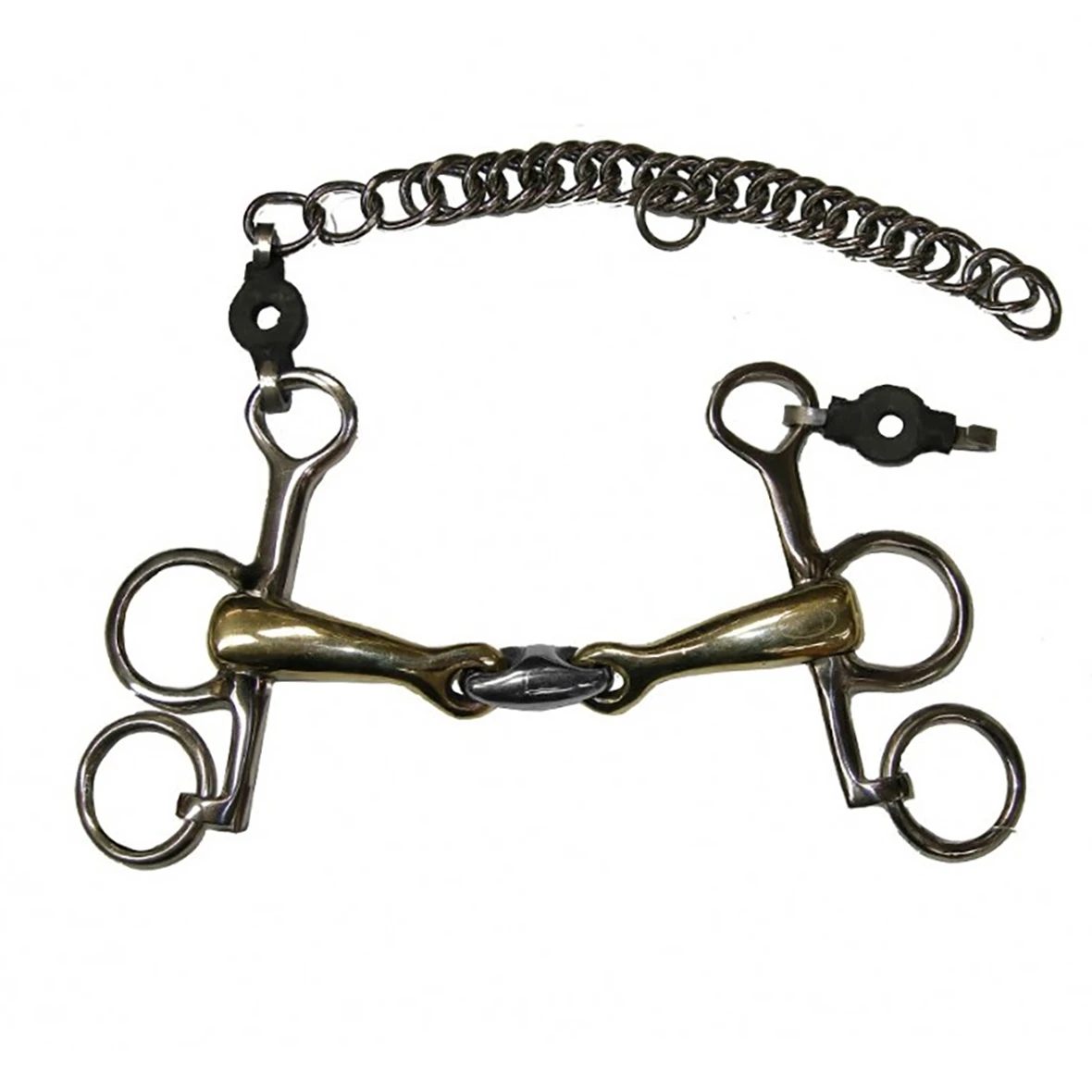 Every Pelham bit can be used directly with two reins, with bit loops or with four reins. Therefore, the curb chain action can be softened by using other curb chain types as leather or nylon ones.