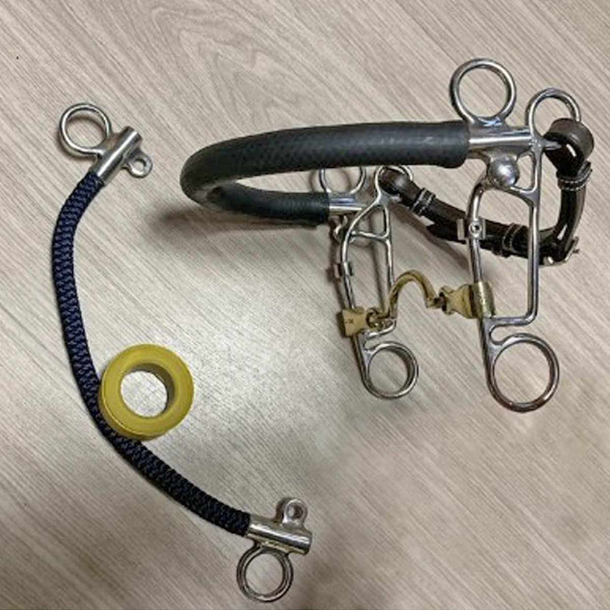 The Combination bit is a hybrid between the Hackamore and the standard bit. It splits the pressure points between the horse’s mouth, the mandibles and the nose. The Combination bit can be a good option to split the pressure points and have as much control as possible. The interchangeable nose system gives the possibility to adjust the action of the mouthpiece. You can switch between a flexible rope nose and a rubber covered chain for a a stronger action.