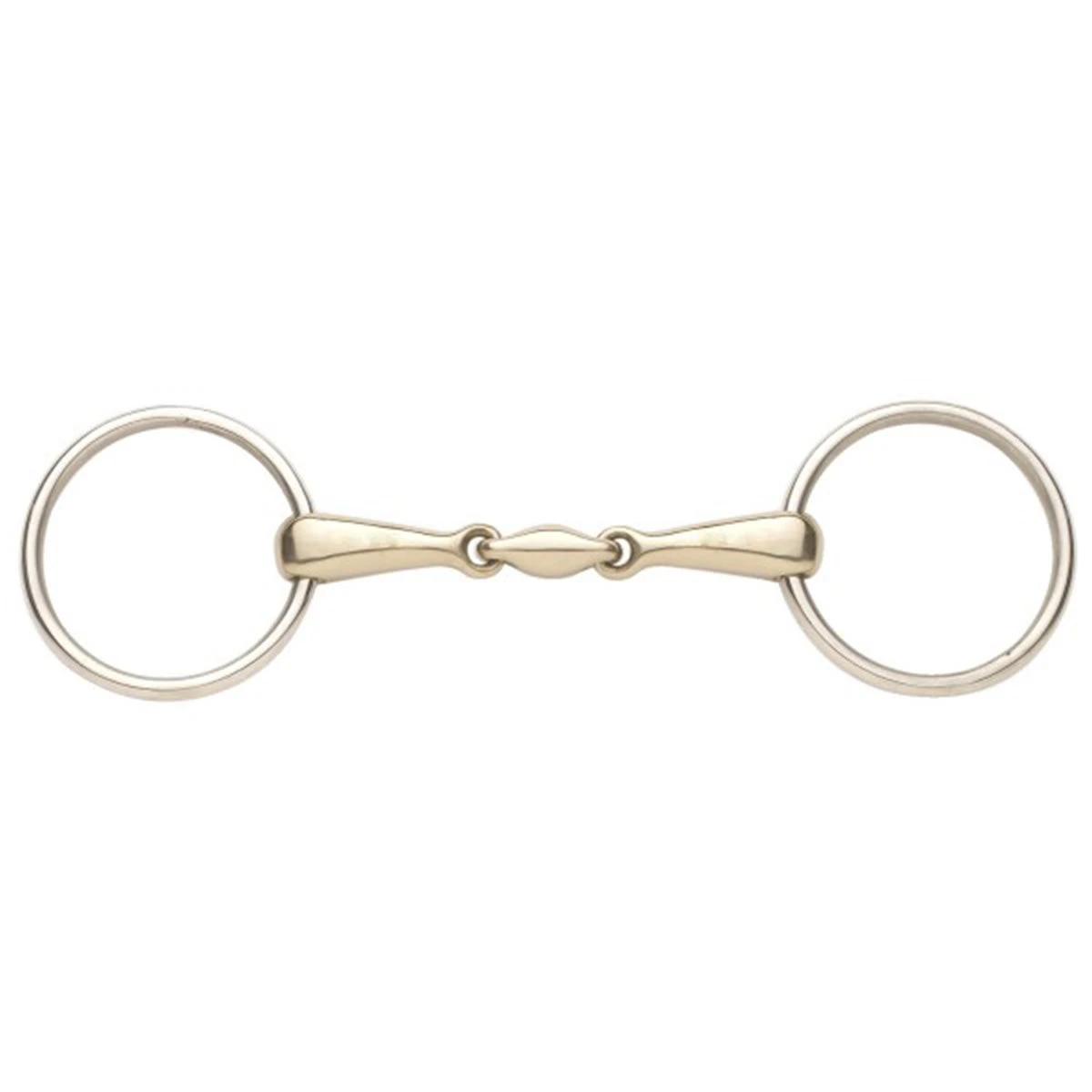 The Ovation Elite Bits feature a shorter rotated link, which allows it to rest entirely on the tongue when rein pressure is applied. This special positioning allows for more precise communication through the reins. The loose ring snaffle encourages a relaxed jaw and mobile tongue. This bit is a classic dressage bit.