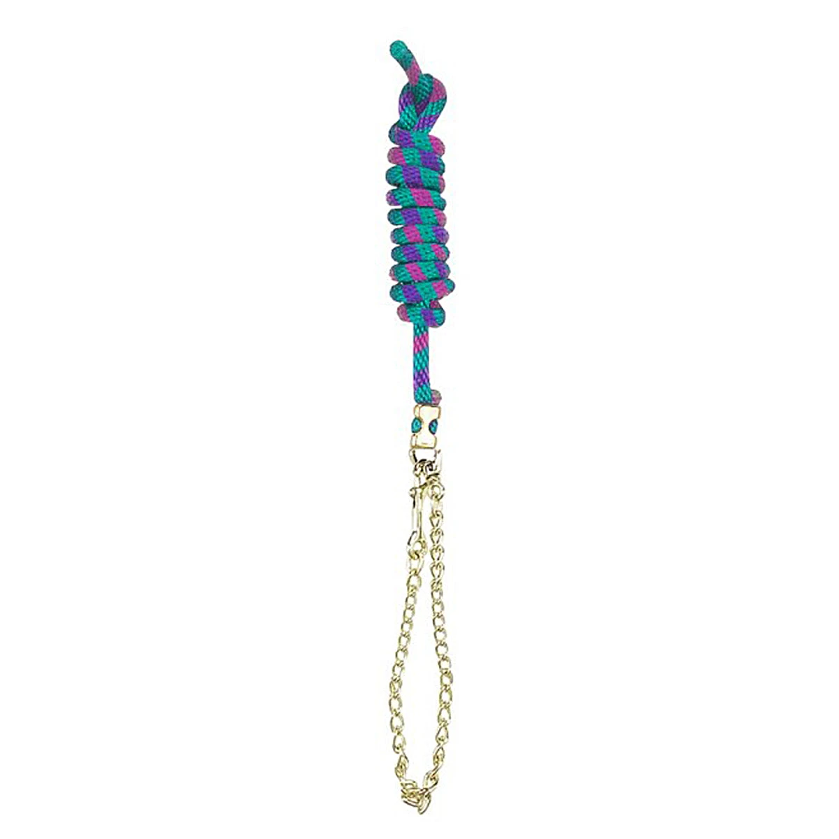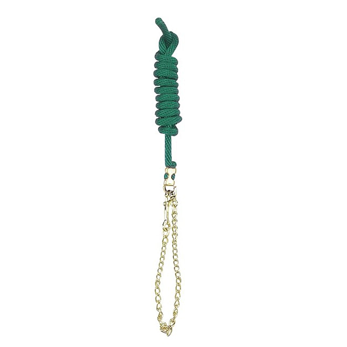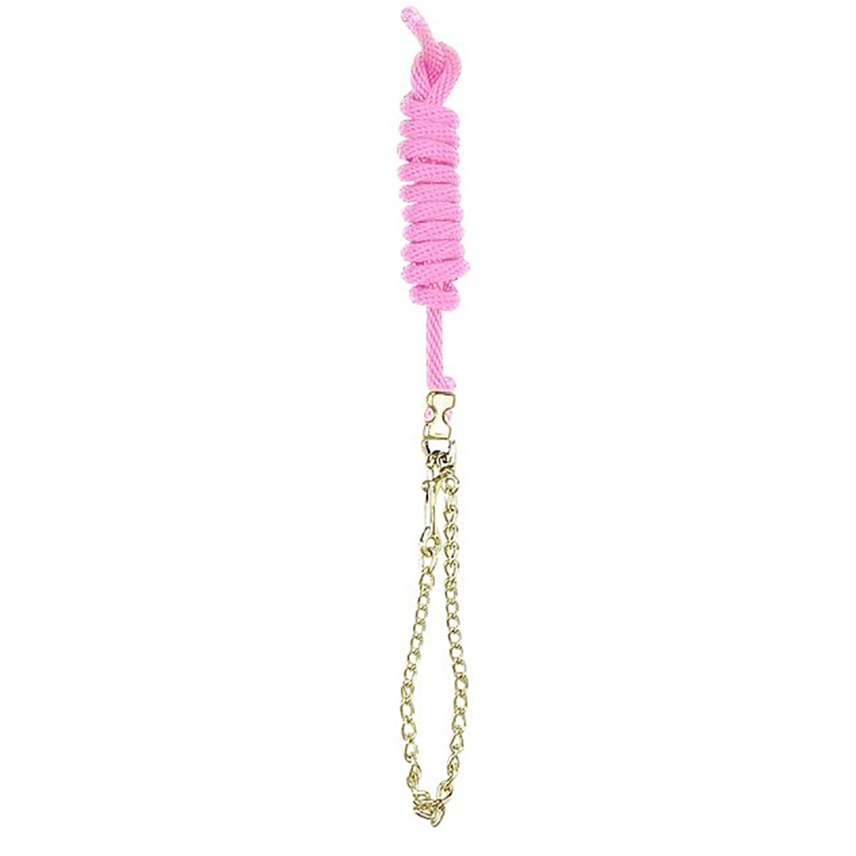 5/8″ polypropylene. 30″ brass plated chain. 8′ length. These are very sturdy and soft.