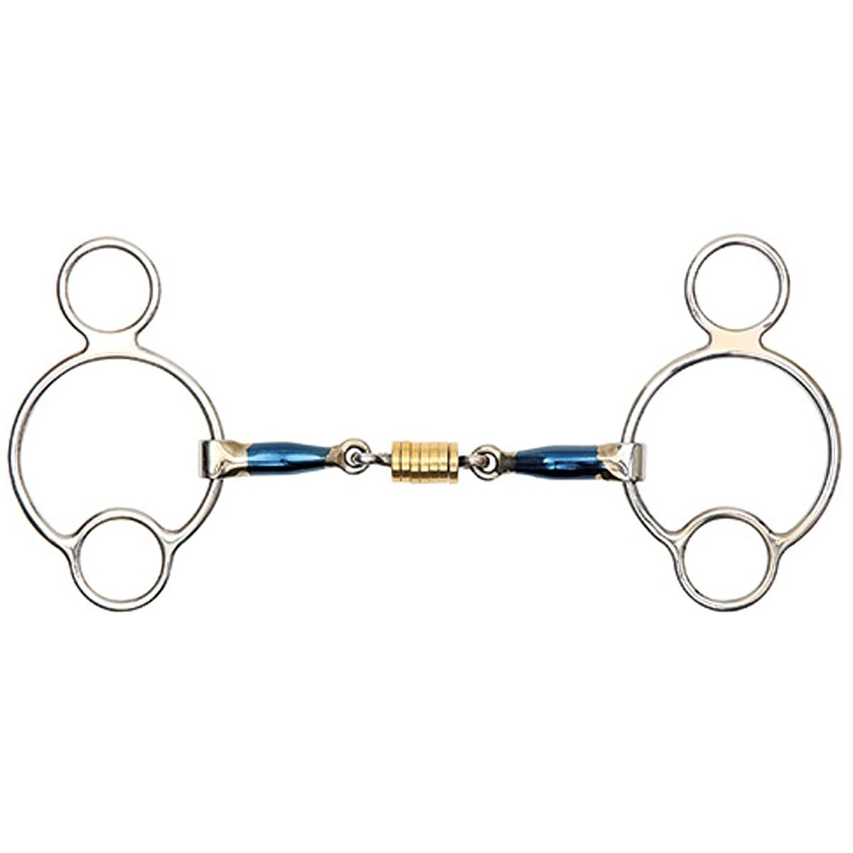 The bevel bit allows mild leverage and offers a little more control, promoting outline, head carriage, and responsiveness. The loose brass alloy discs in the center can help to soothe a fussy tongued horse.