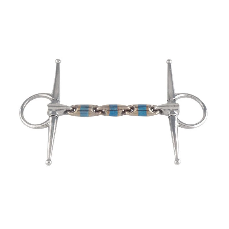 The full cheek has two transverse bars on the jaw piece.Ā This shape creates more pressure on the horse’s cheeks.Ā This makes a horse easier to maneuver and a bit cannot be pulled through the mouth as easily.Ā In addition, this bit is quiet and stable in the mouth.Ā The full cheek is ideal for young horses due to the pressure distribution or spirited horses to prevent the bit from being pulled through the mouth.Ā Ā