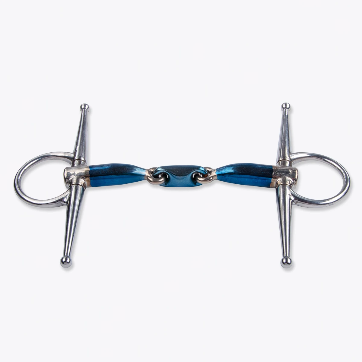 The Sweet Iron bits are made of steel and have a recognizable blue color. Sweet Iron will rust when it comes into contact with (air) humidity, the surface rust tastes sweet and naturally stimulates saliva production. This will cause the horse to salivate more, which in turn will encourage a better acceptance of the bit. The process of rusting (oxidation) changes the blue color of the TRUST bits to a brownish-grey. This is the desired effect of the Sweet Iron bits. If a Sweet Iron bit is not used for a while, an orange-brown rust layer may form on the mouthpiece. Simply remove this by wiping the bit with a damp cloth.