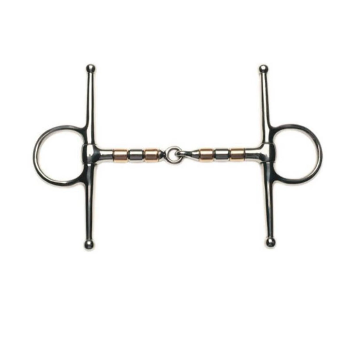We love the Korsteel Copper and Steel Roller Mouth Full Cheek Snaffle Bit because the full cheek snaffle has narrow arms which project above and below the rings, preventing the mouthpiece from sliding in the horse’s mouth and emphasizing the tuning aid. The copper rollers help to increase salivation and prevent the horse from taking hold of the bit. The single joint applies a nutcracker action that applies pressure to the tongue, the bars of the mouth, and the horse’s palate.